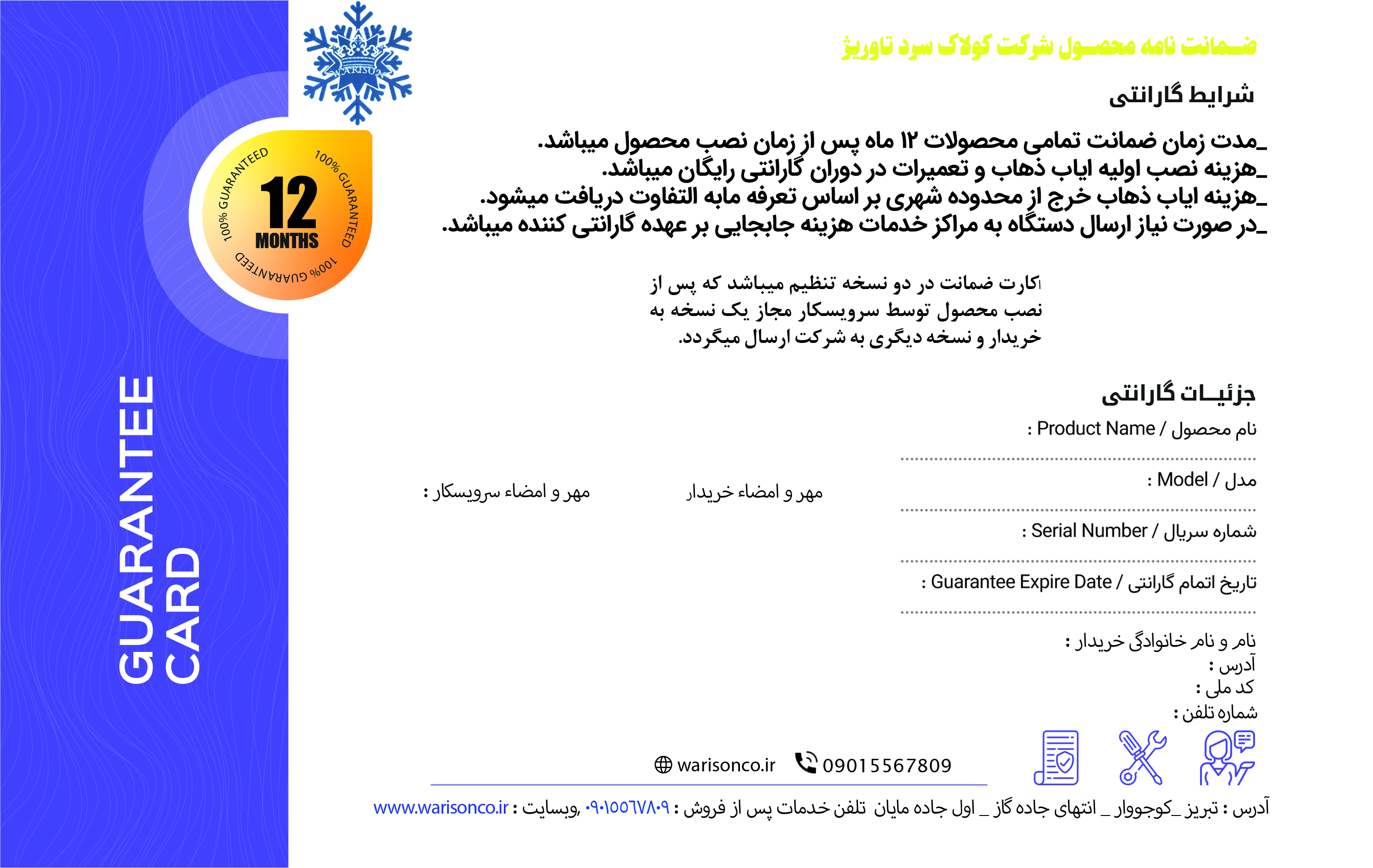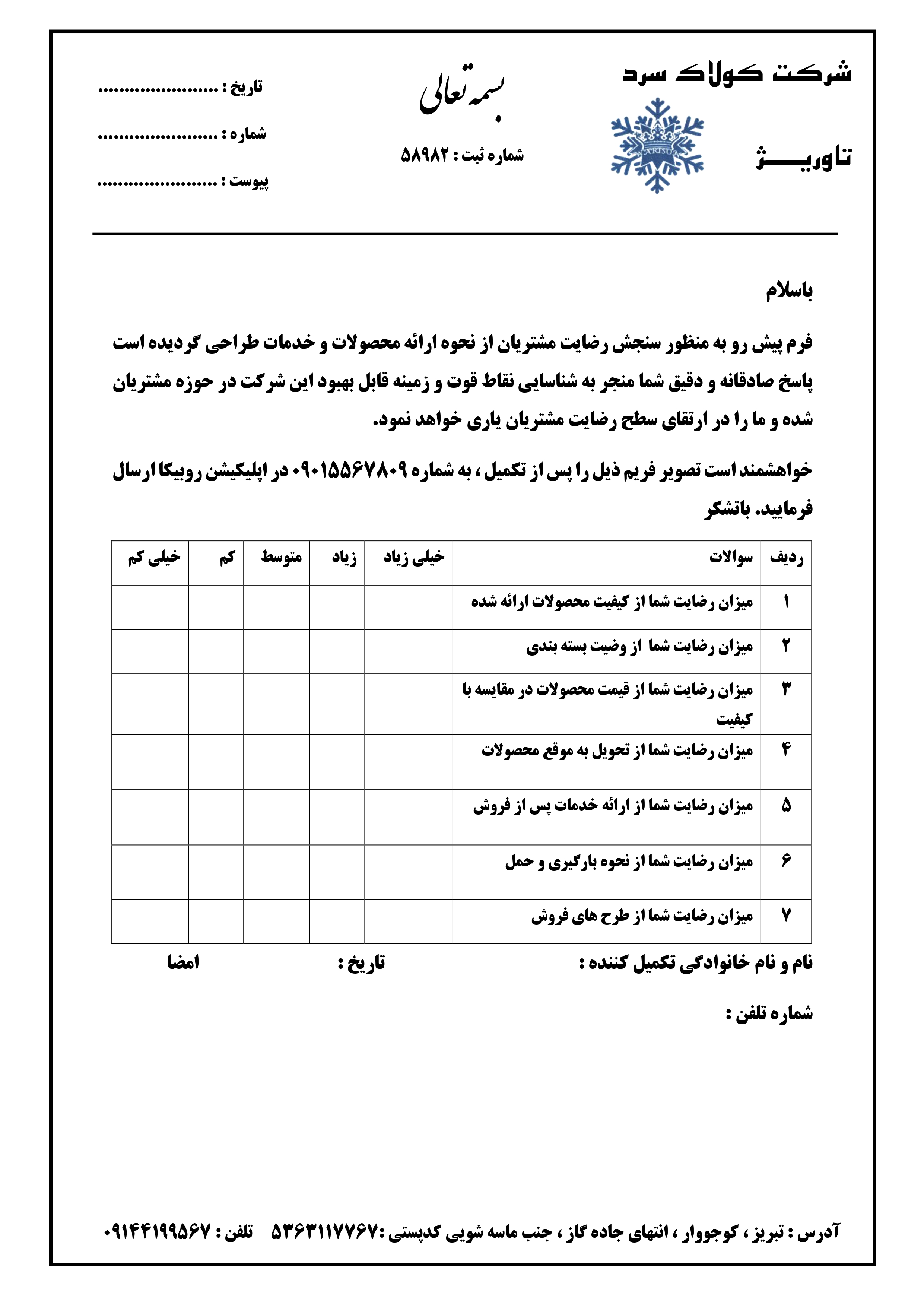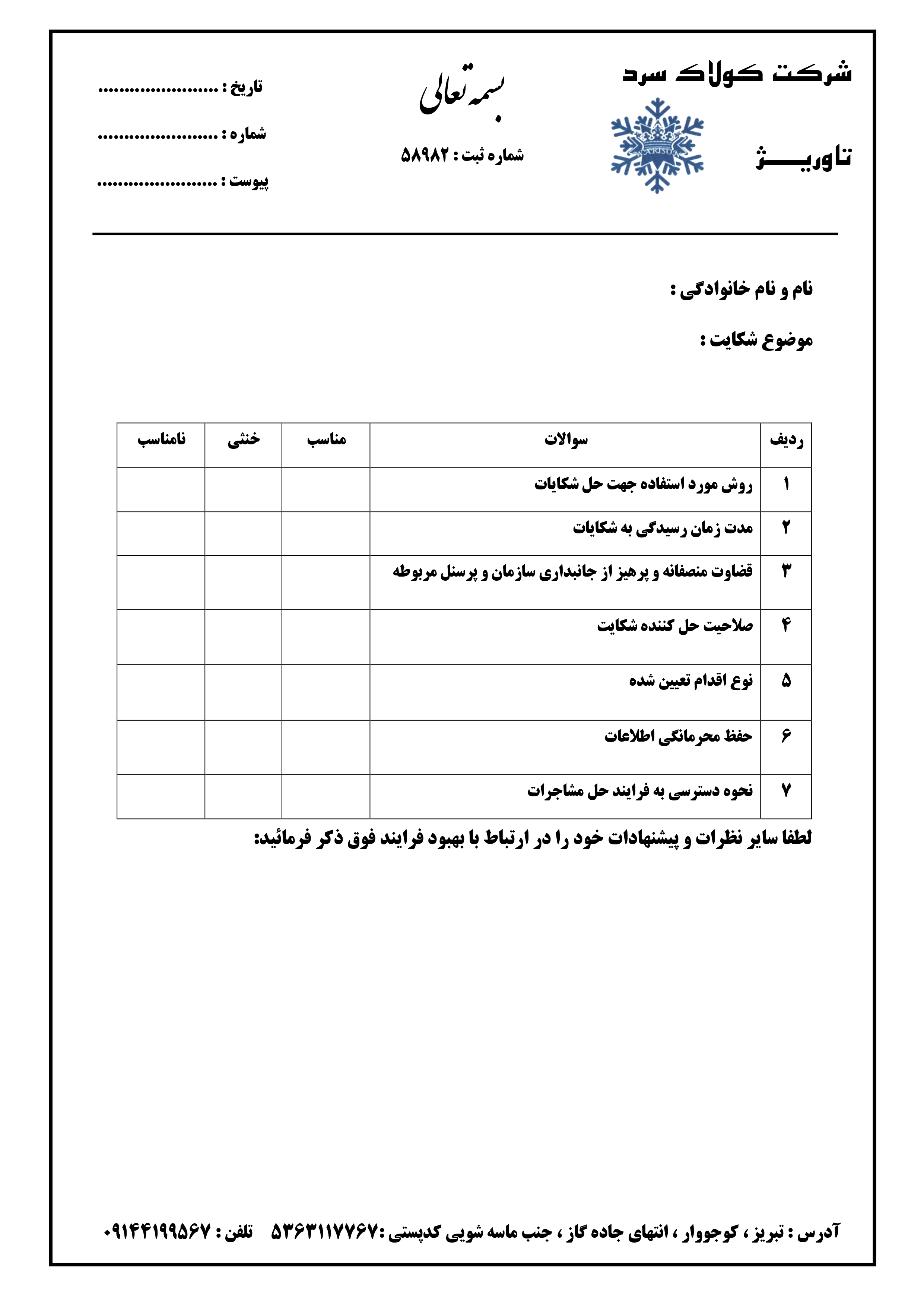 فرم های نظرسنجی و شکایت مشتریان و شرایط گارانتی